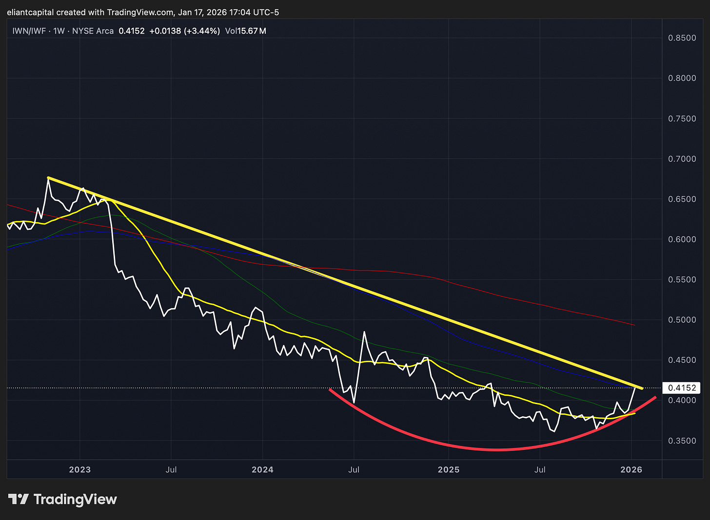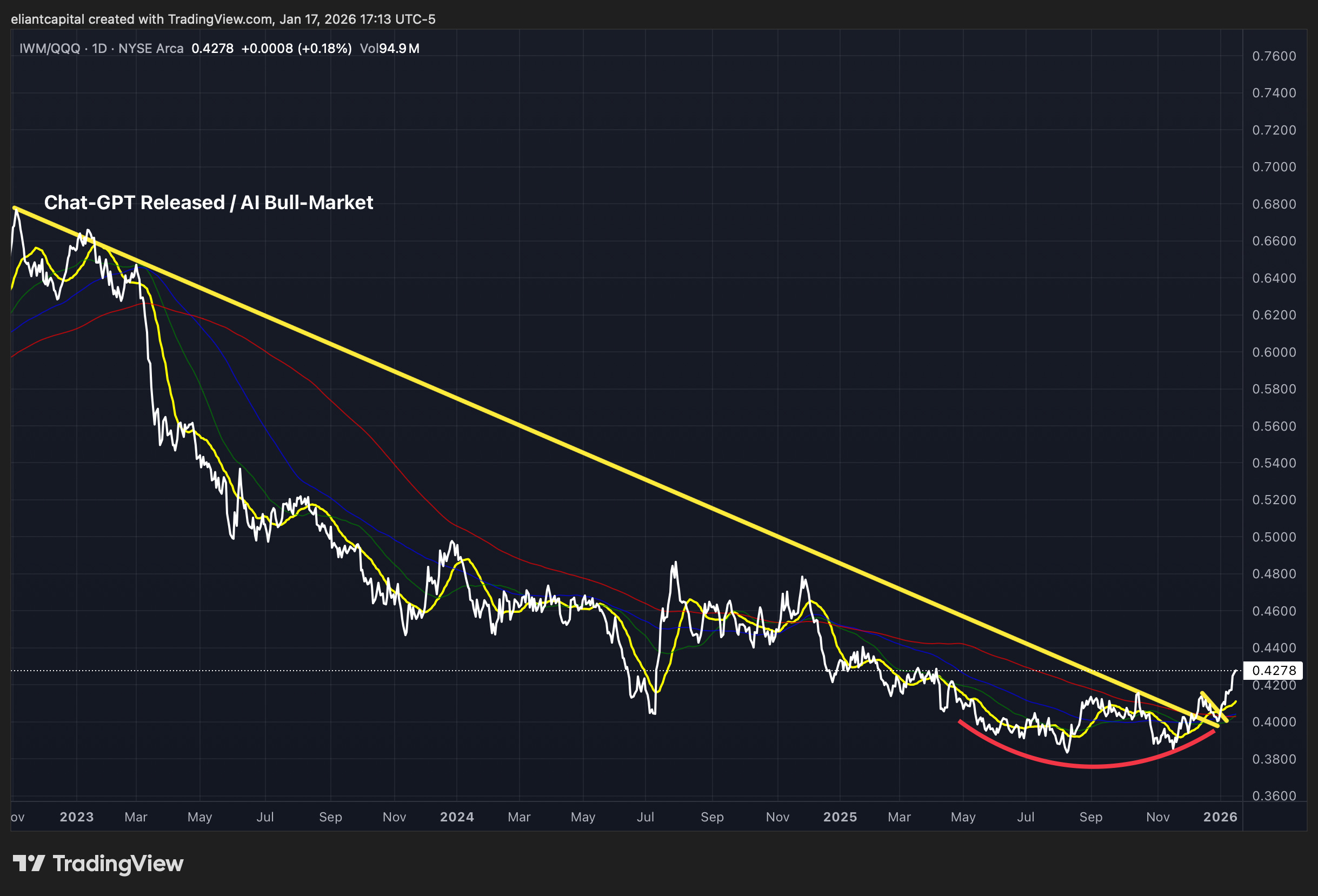 And although individuals are just now coming to the realization of the recent Small-cap & Cyclical outperformance, Small-caps have been outperforming Tech since August of ‘25 with IWM/QQQ having risen 11.5% within the period: