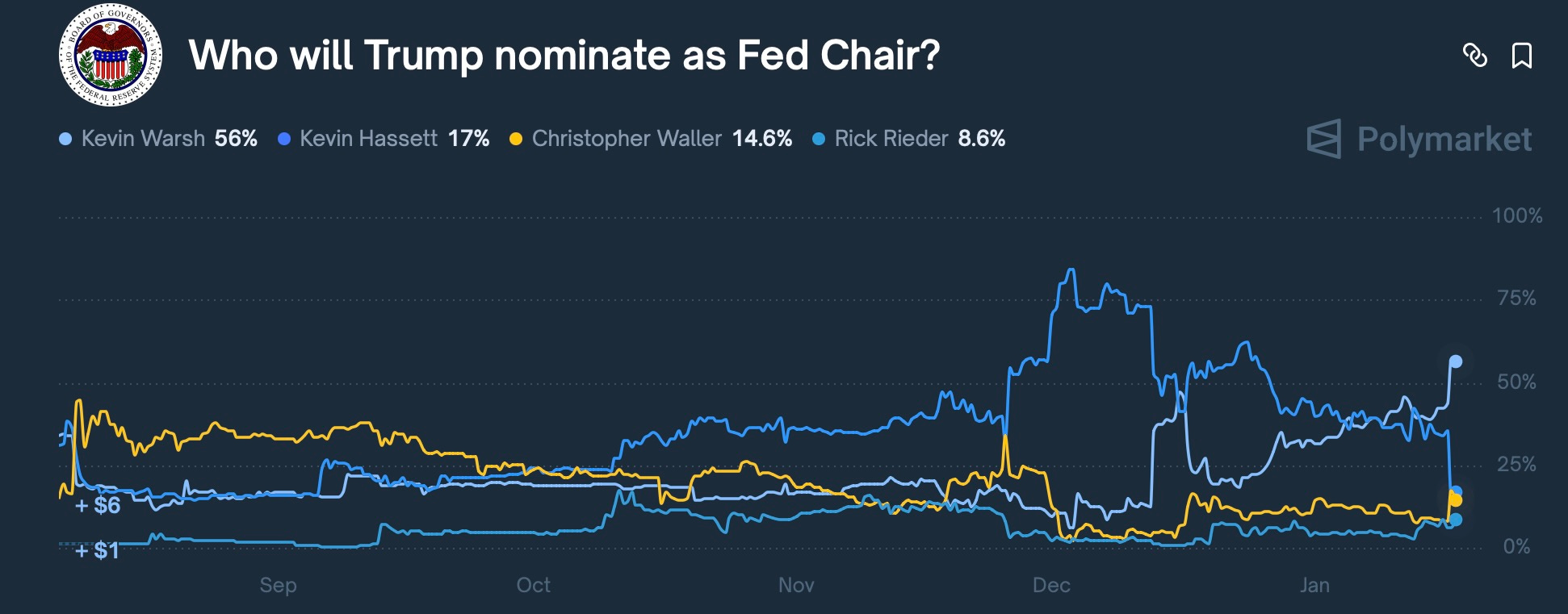 And finally, before we jump into the remainder of the week ahead, following Trump’s statement on Friday suggesting Hassett should stay in his current role, Warsh’s odds surged for the next Fed Chair & he now remains as the current favorite with odds sitting just under 60%.