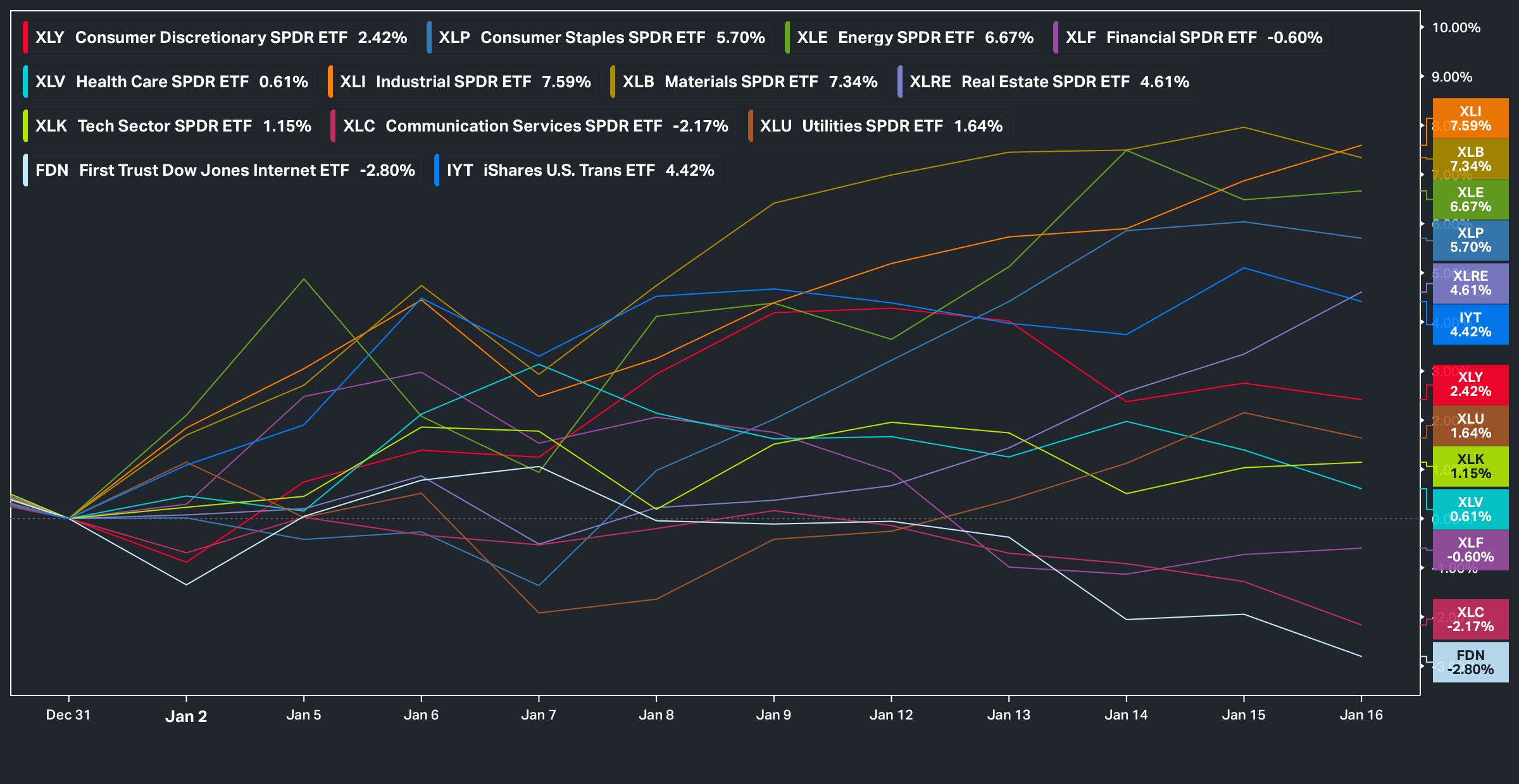 5/6 top performing sectors YTD are all… cyclical.