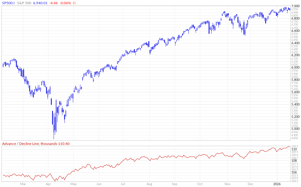 General point being, despite Spooz & the Q’s having largely remained rangebound for the past several months, it’s instead just allowed capital to flow elsewhere (S&P 493) which has driven quite the uplift in breadth & upside participation which is made clear as shown below given the new high within the ADV-DECL Line this past week despite Spooz being around 100bps off ATHs: