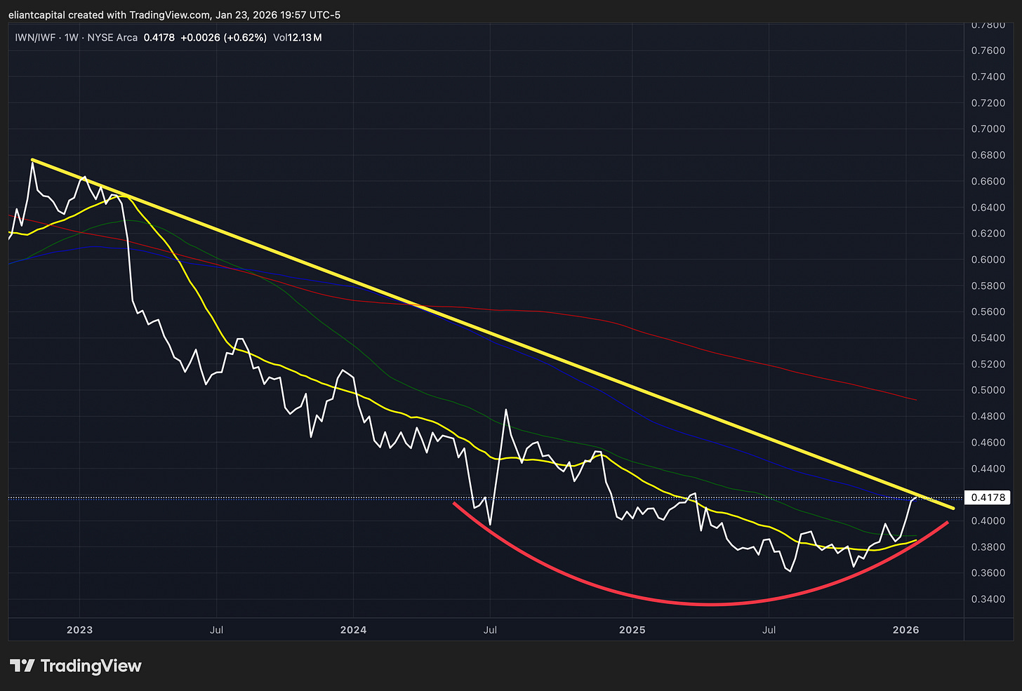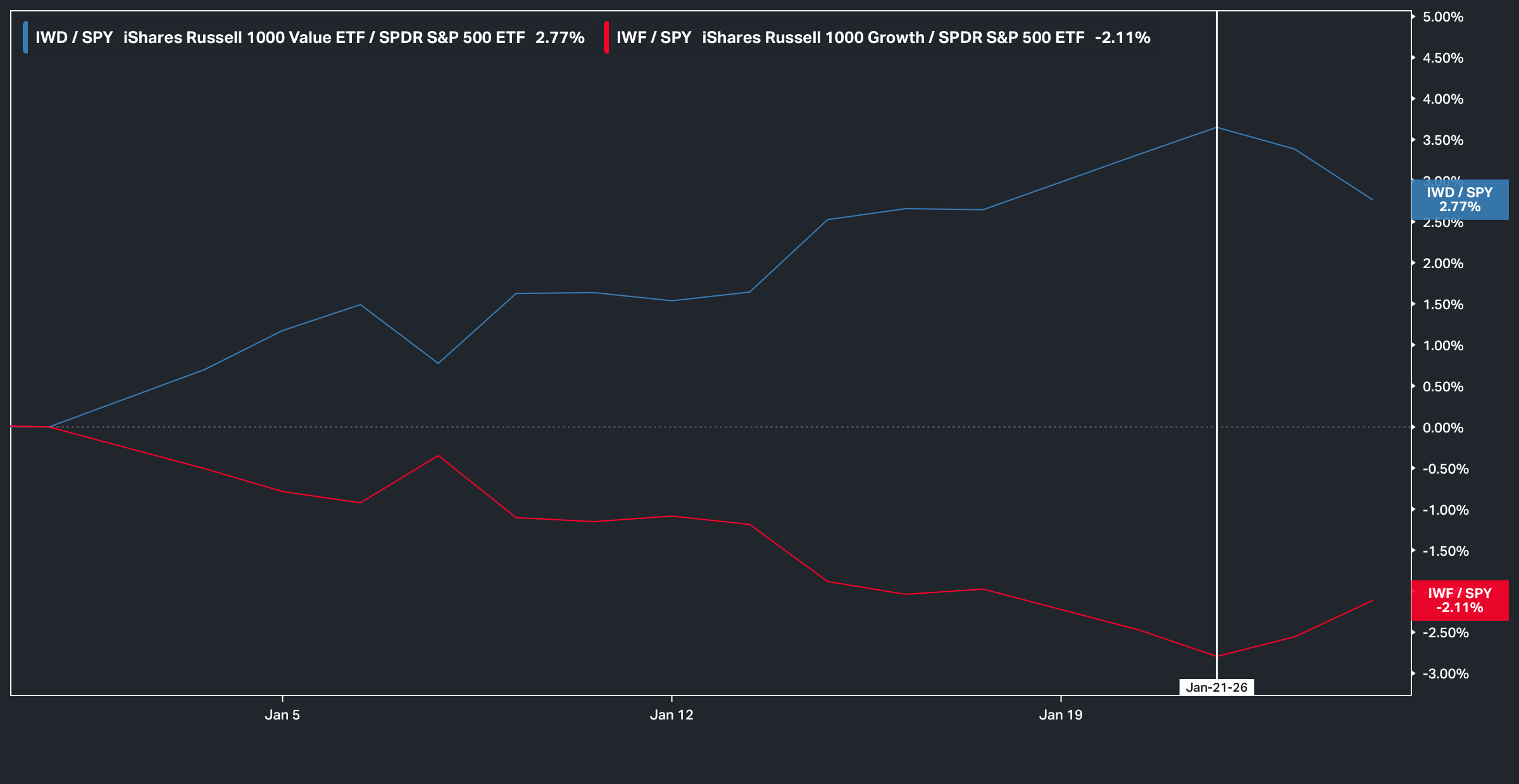 Question of the matter into the next few weeks is if the recent underlying dynamic of Value over Growth outperformance continues thus leading to a breakout within IWN/IWF & or if this was just another shorter-term blip of relative outperformance before markets then rotate right back toward growth: