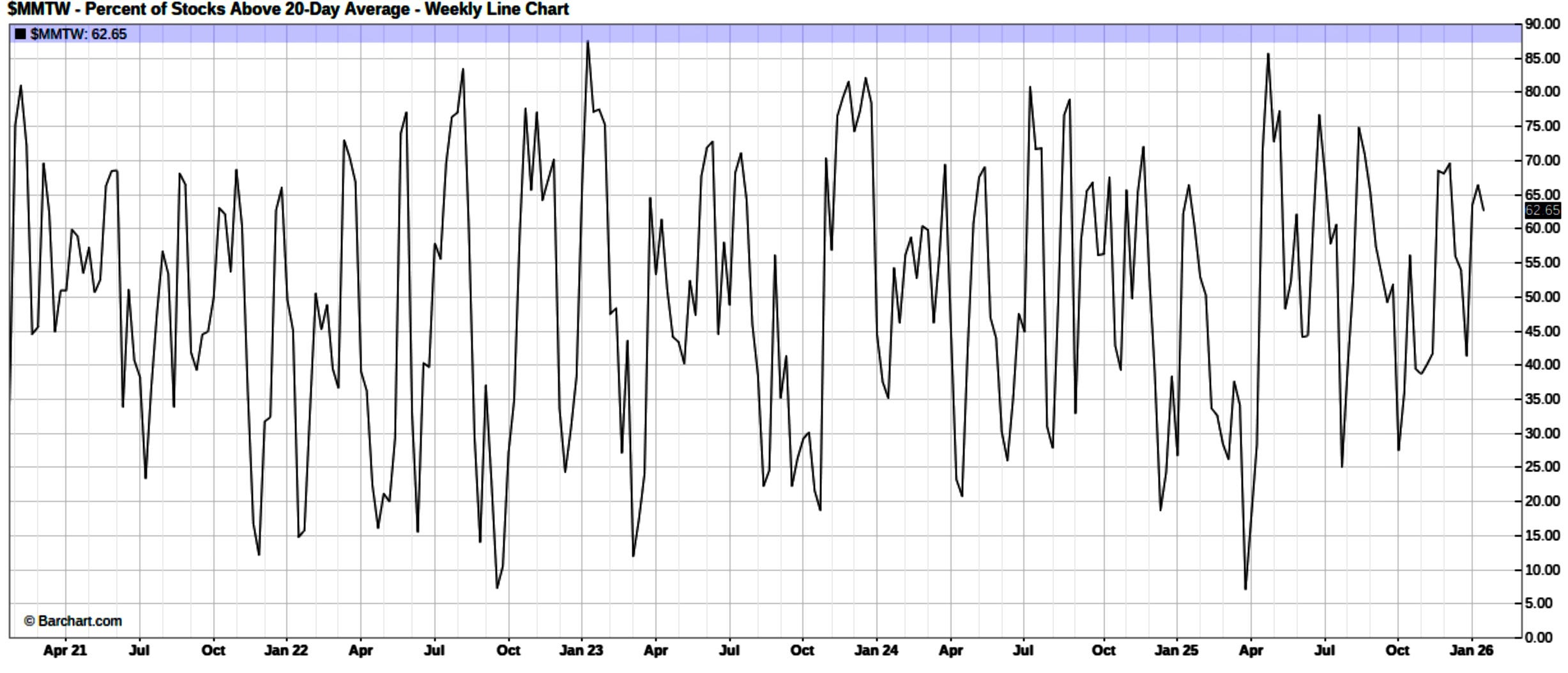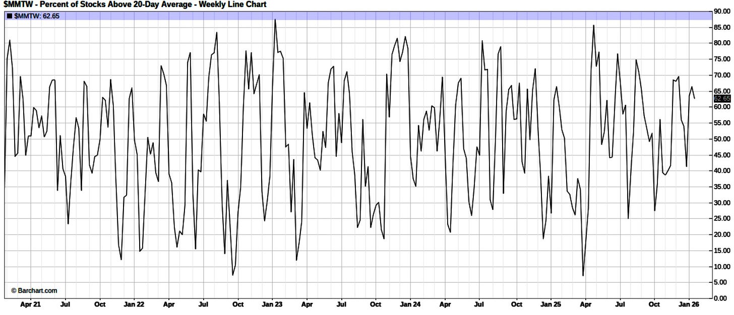With that being said, despite the overall lackluster price action within the indices, again, overall breadth has still continued to remain quite strong as the % of Stocks above the 20D for example still sits at 62%: