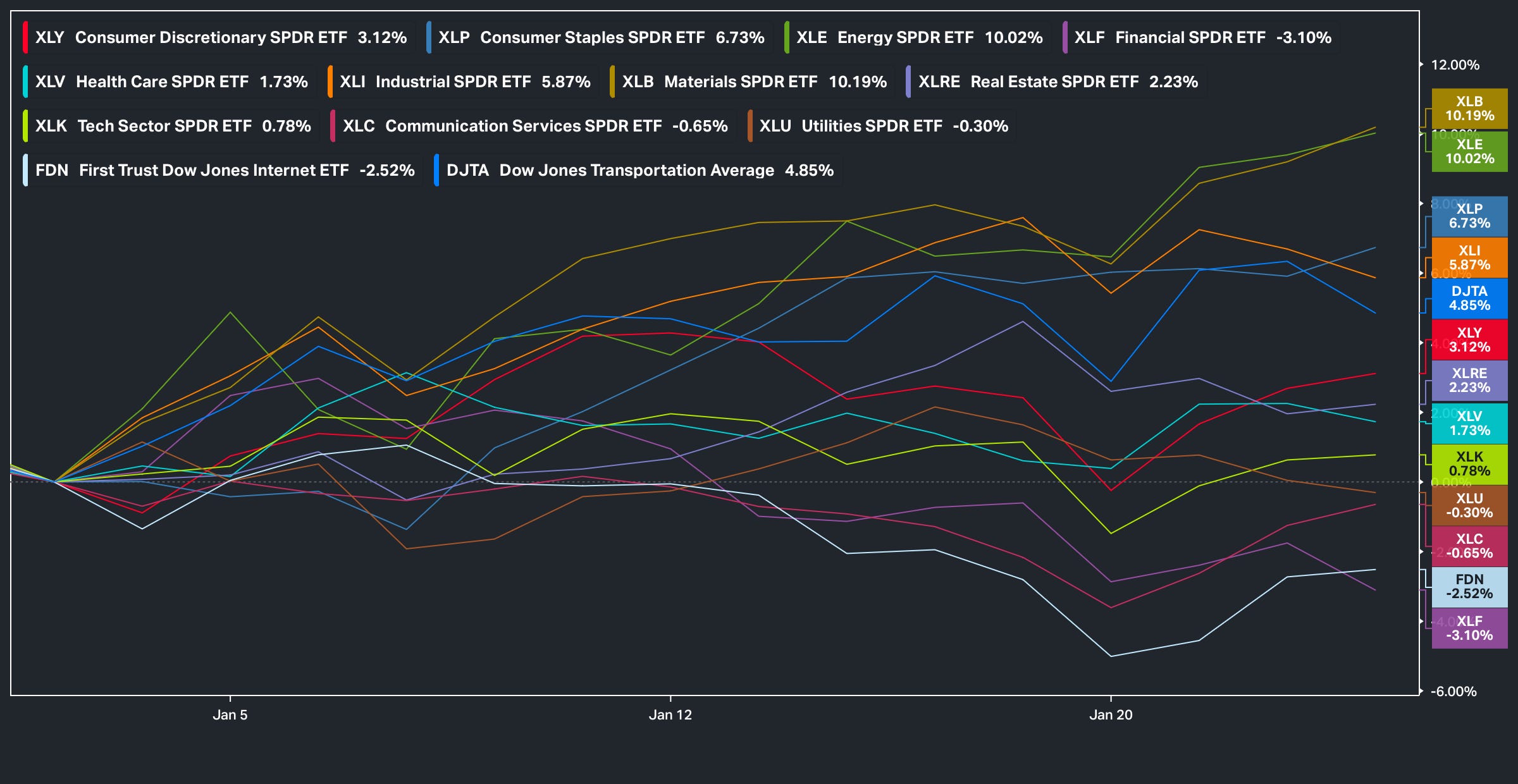 With that being said, as the year has kicked off, the shift & rotation toward cyclicals & or ‘real economy’ names has been standout across a broad set of sectors: