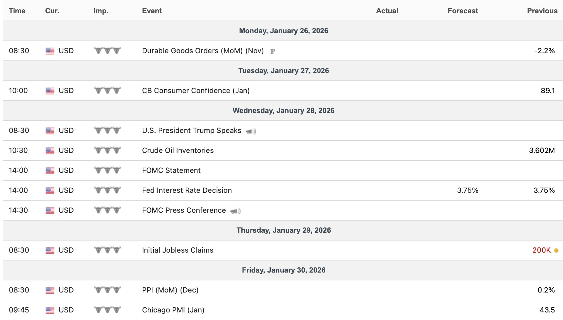 - Economic Data for the Coming Week: