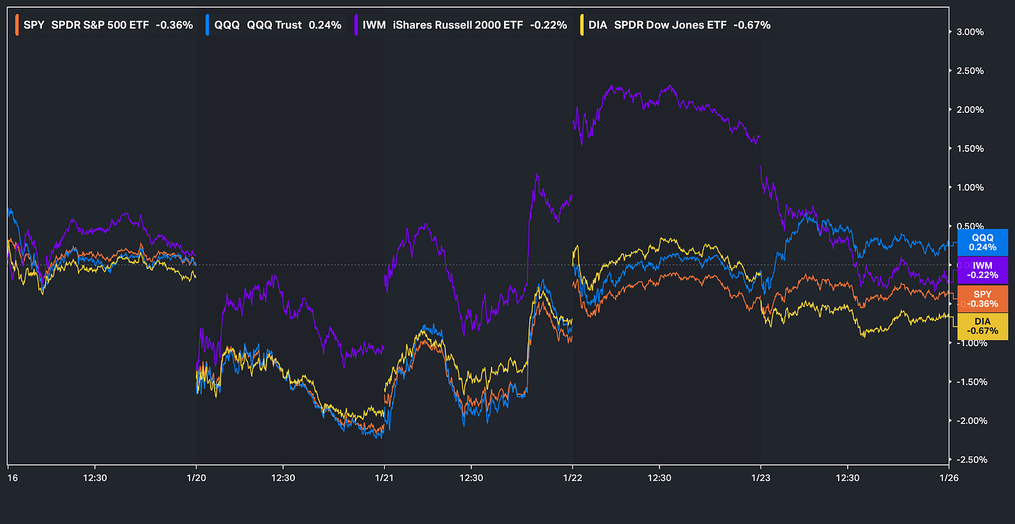 Looking back at this past week, despite the lack of economic data & general event risk on the shortened trading week, the week initially kicked off with the U.S. (Trump Administration) issuing threats (Tariffs) against the EU in order to secure Greenland & as a result, it triggered a ‘Sell all U.S. assets’ day in which equities were sold, bonds were sold, & last but not least, the dollar was sold but just 2-days later, tensions were relieved as Trump stated the U.S. wouldn’t try to ‘take Greenland with force’ & the initial deadline of the February 1st tariffs on the EU were cancelled as well.
