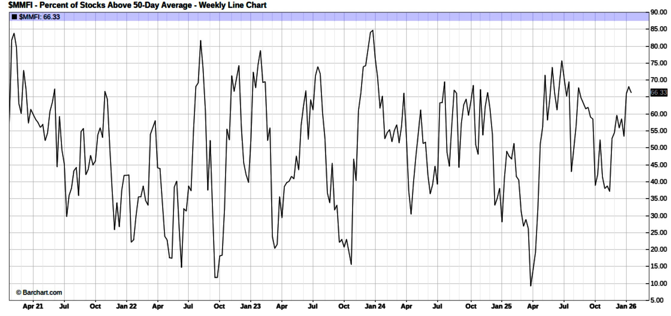 And even on a more broader timeframe, the % of stocks above the 50d sits at 66% as well which is generally a signal of a healthier market in relation to upside participation (Peak in last 5-years was December ‘23 near 85% following Powell’s initial signal that the Fed was ready to move toward a rate-cut cycle):
