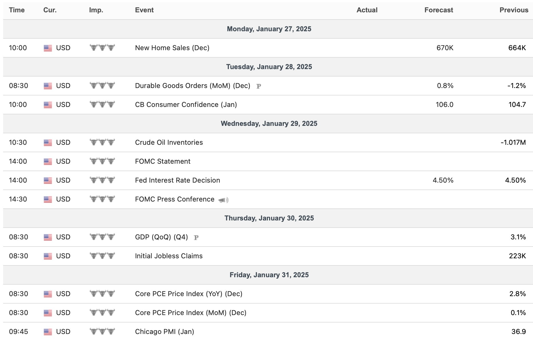 - Economic Data for the Coming Week: