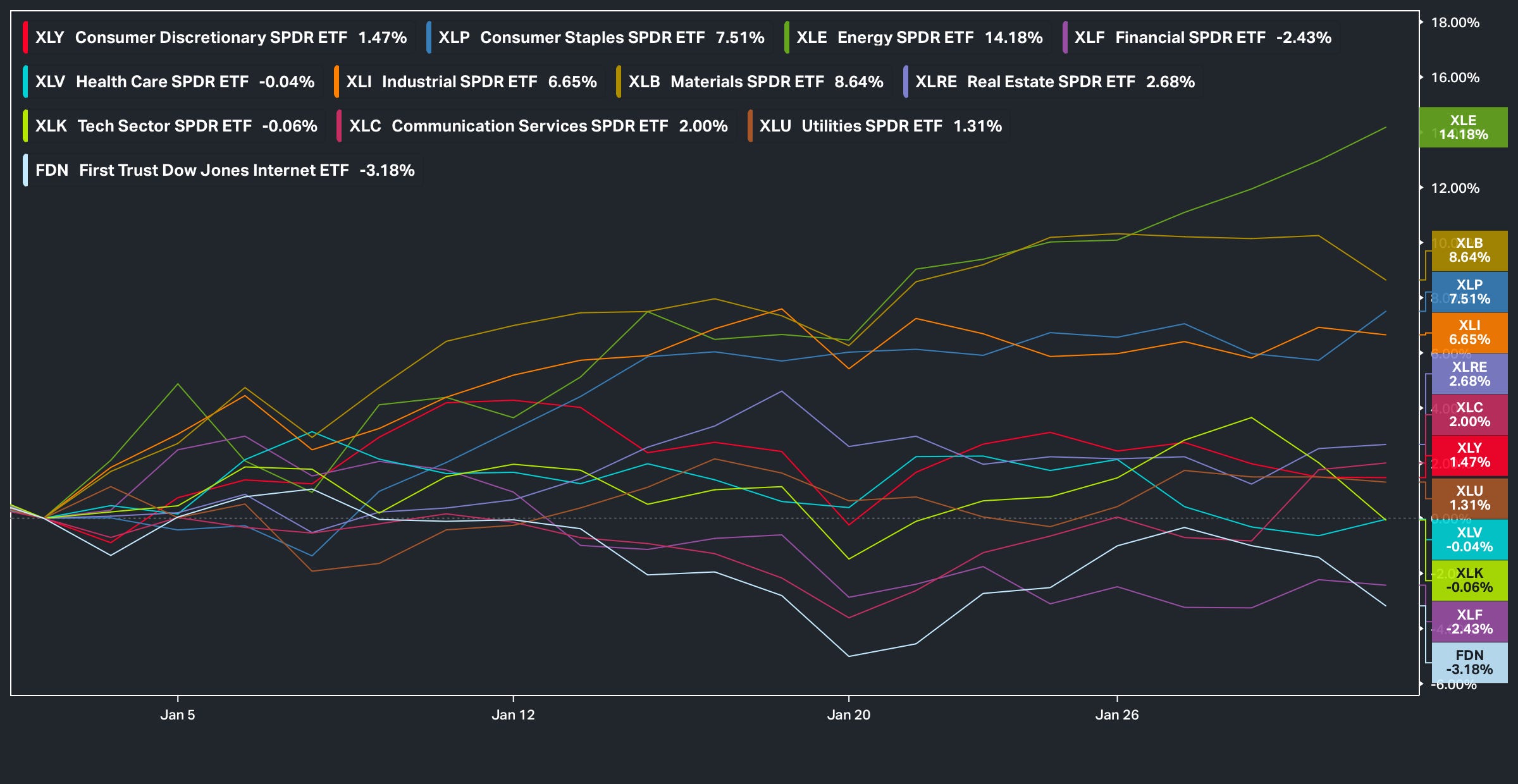 With that being said, we made it through the first month of ‘26 & as shown below, the top performing group & or sectors YTD were mostly contained to cyclicals: