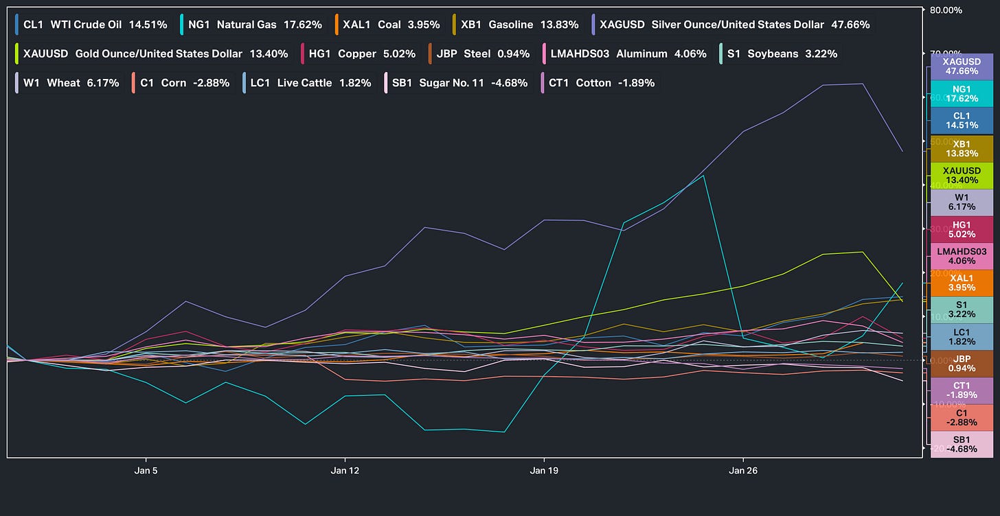 Before we jump into the week ahead, looking back at this past week, again, FOMC was rather uneventful as Powell more so reiterated the same messaging from the December FOMC with the only difference essentially being the economy improved & the tension between risks (Inflation & Labor) are now much more balanced & the only other ‘event’ of significance was the announcement of Warsh as the new Fed Chair on this past Friday.