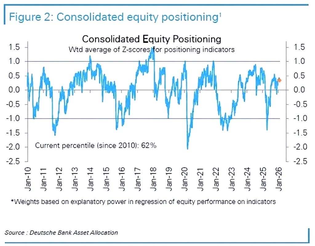 And finally, before we jump into the remainder of the week ahead, from a positioning standpoint, not much has necessarily changed per DB in which positioning still remains modestly overweight (62nd percentile) although still remains far from stretched comparatively to prior peaks which still emphasizes a market filled with reluctancy & upside complacency in terms of increasing length: