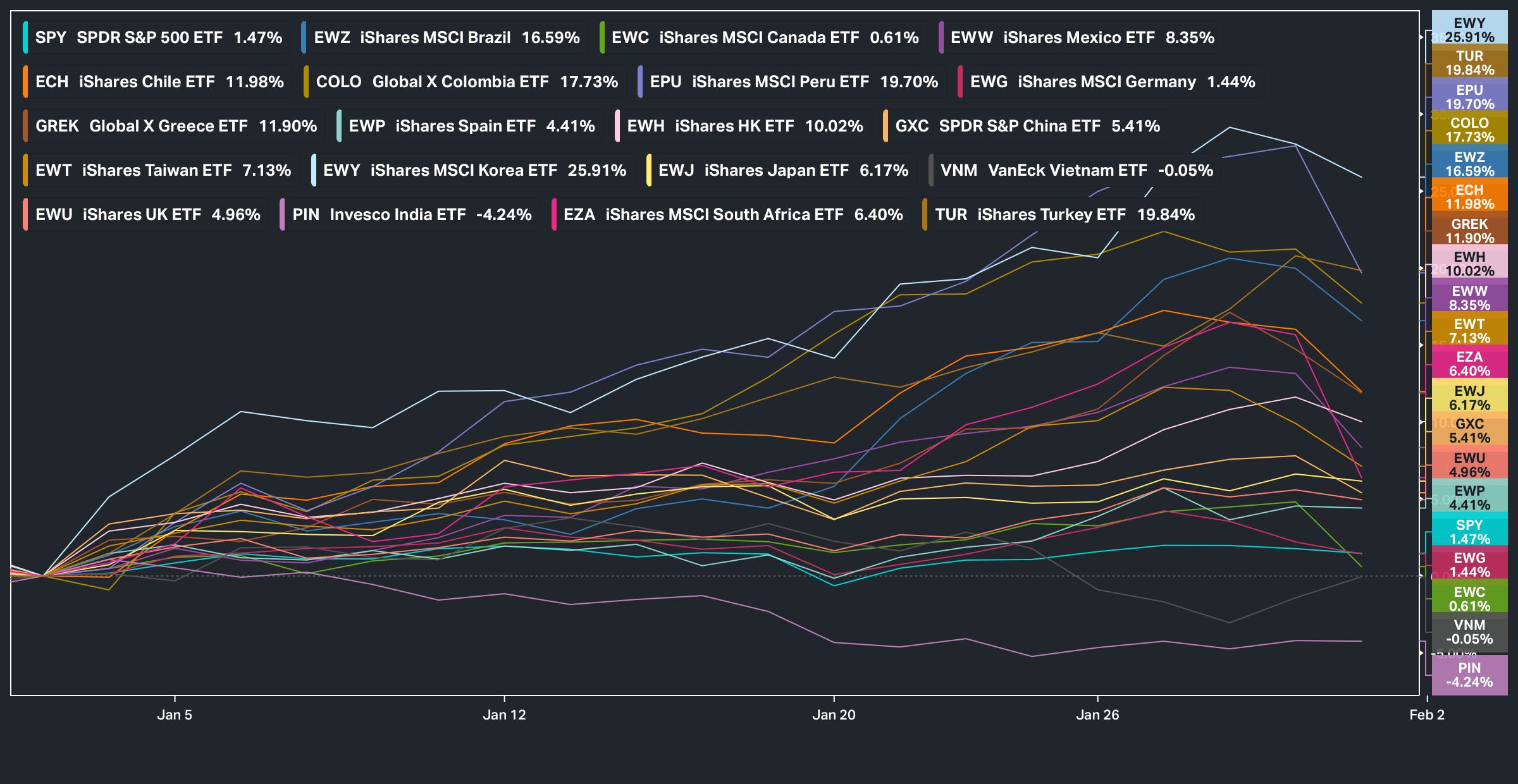 In regard to country specific performance, Latin America led the way as the best performing group (4 out of the top 6):