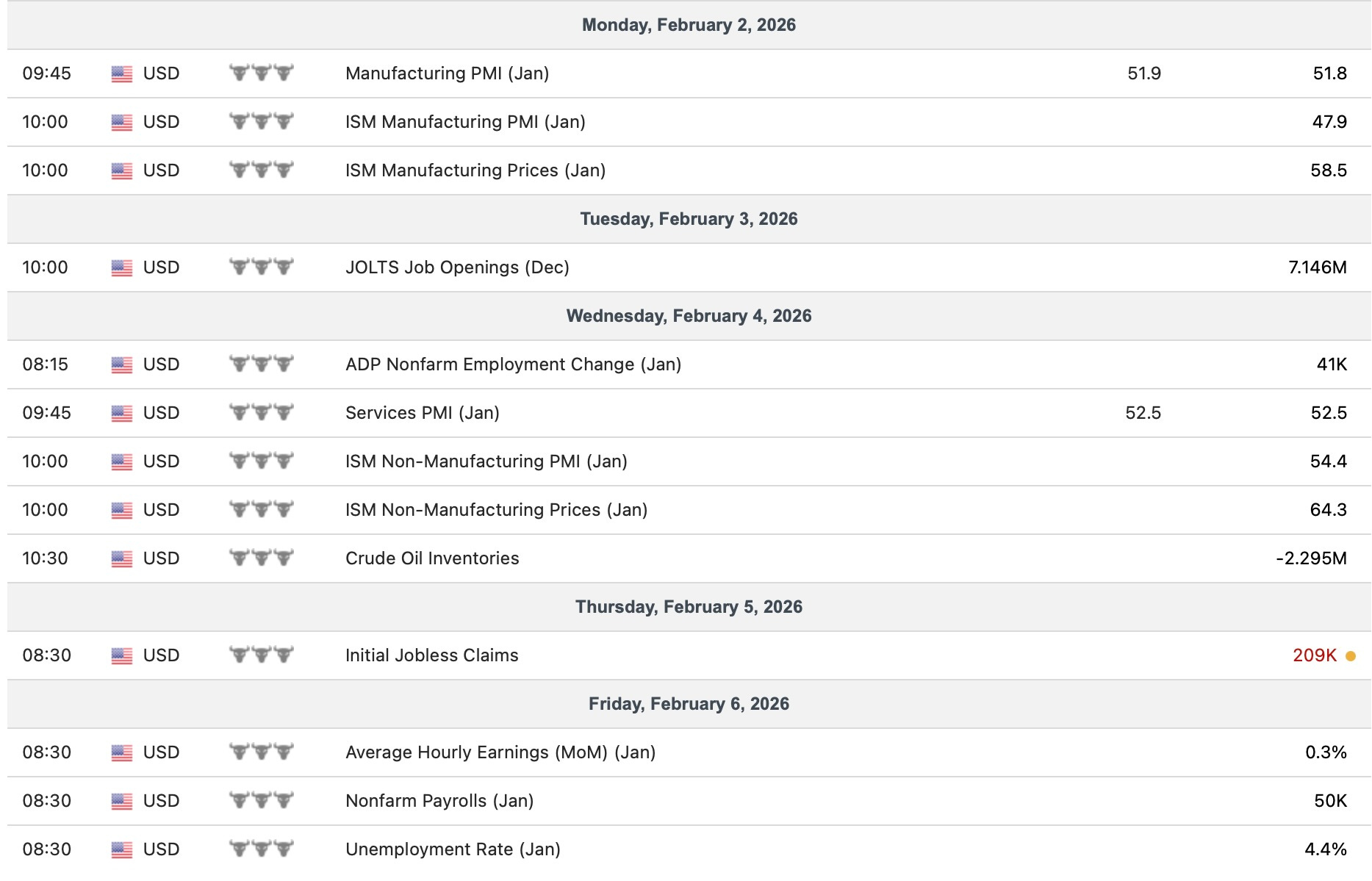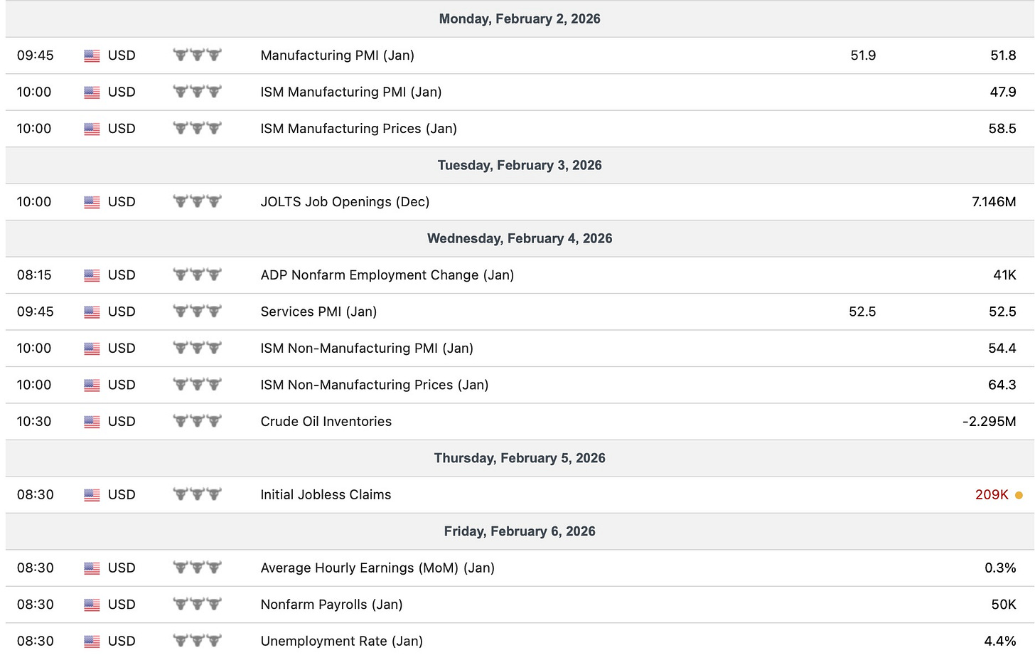 In regard to economic data into the upcoming week, the most important event is the January Jobs report on Friday but besides that, we just have scattered labor & economic data throughout the week & nothing necessarily out of the ordinary:
