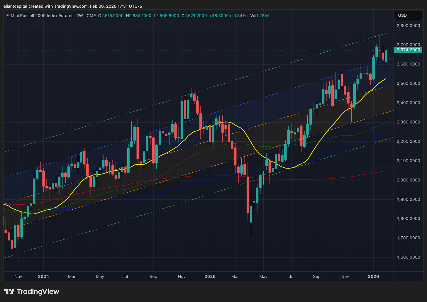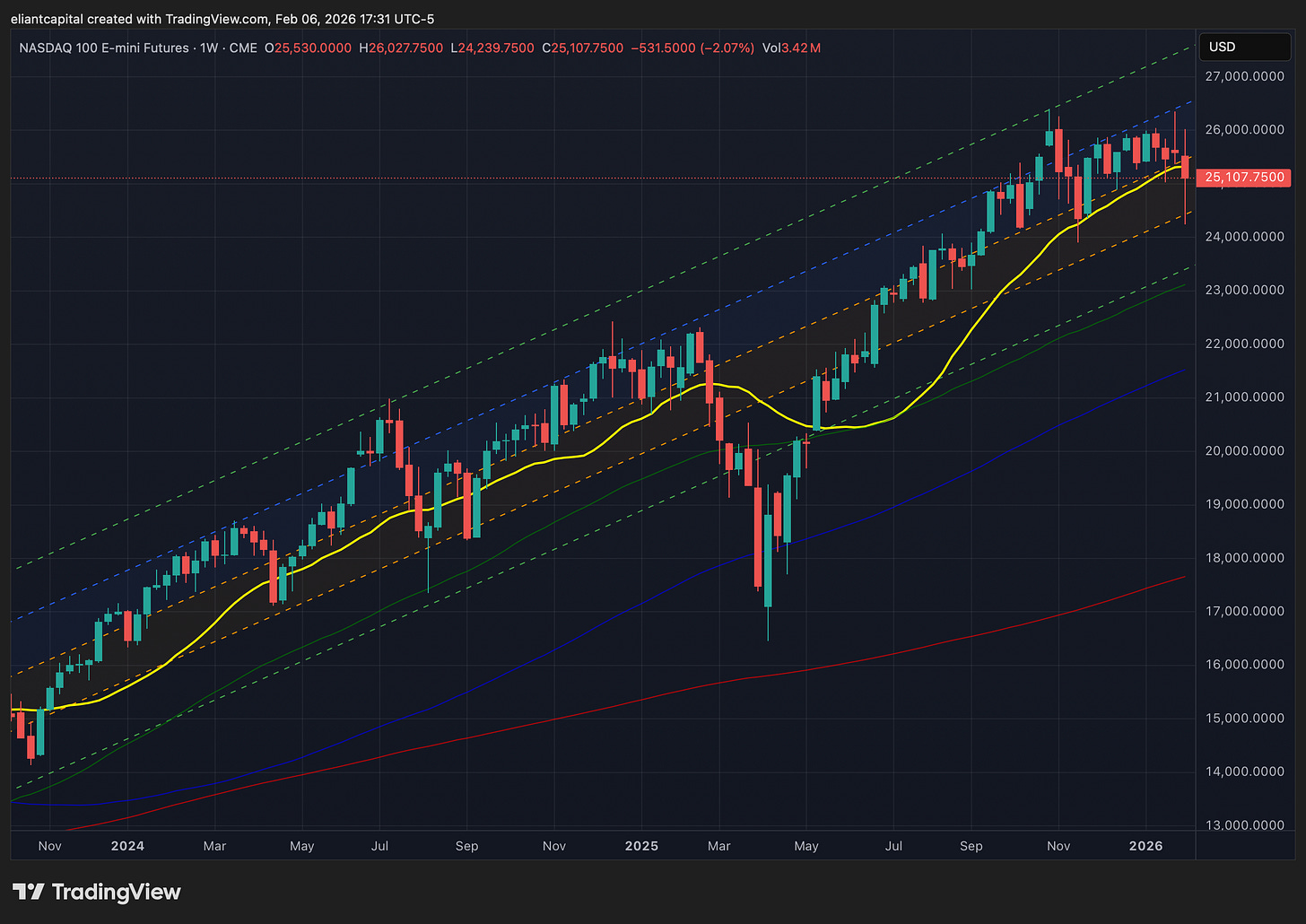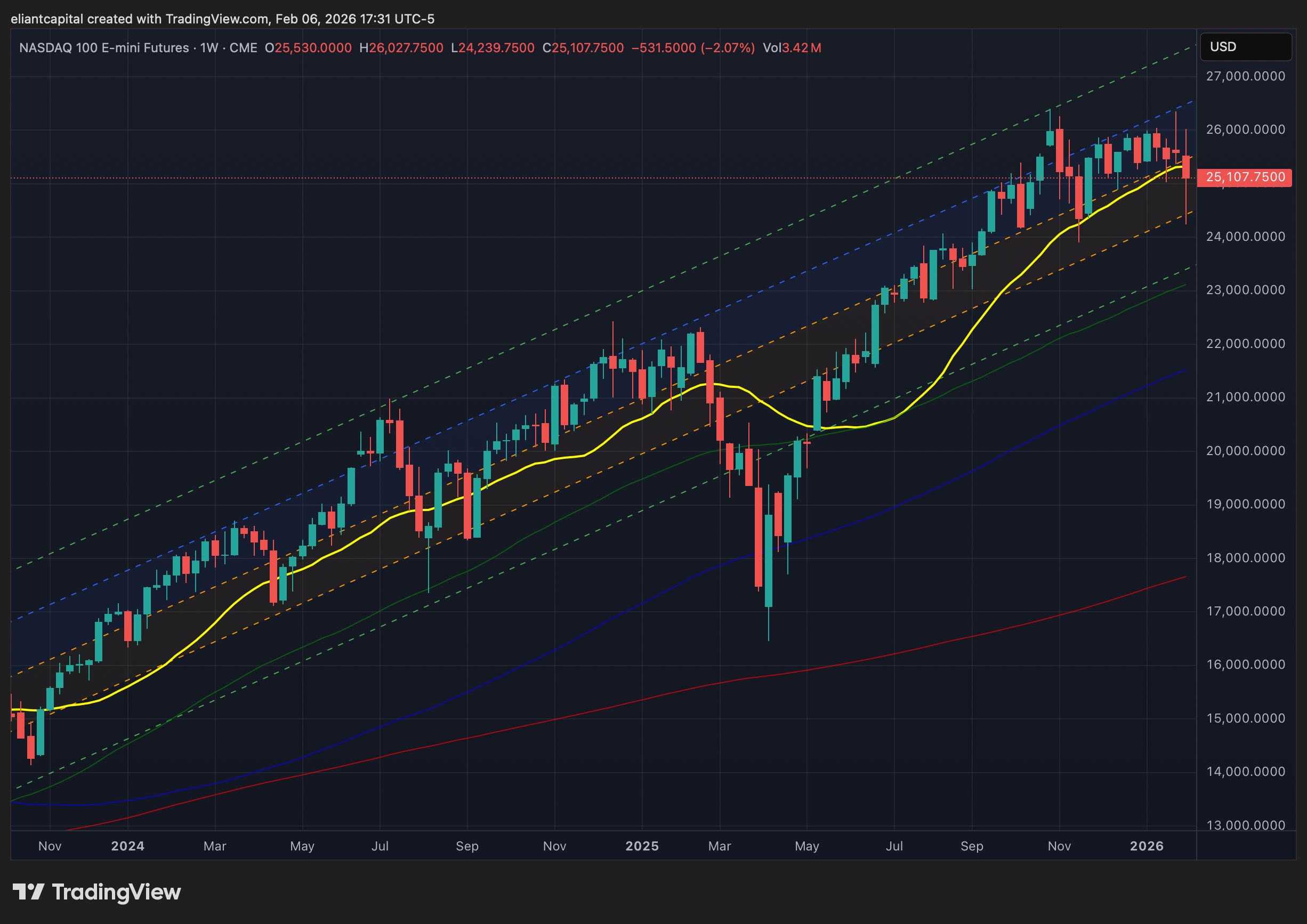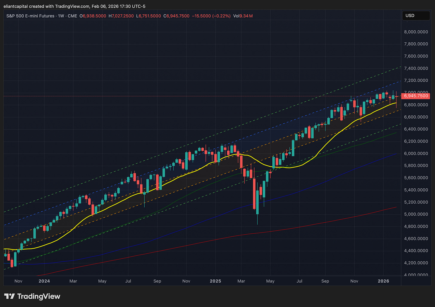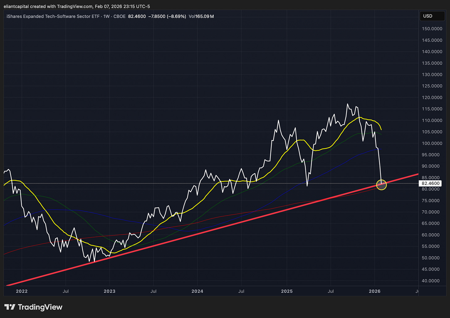 - And secondly, the apocalypse across SaaS & Tech driven by the quick and swift pricing-in of terminal risk related to AI threats which has since led IGV to fall just over 30% off the highs whilst also having come into contact with the 200wk this past week: