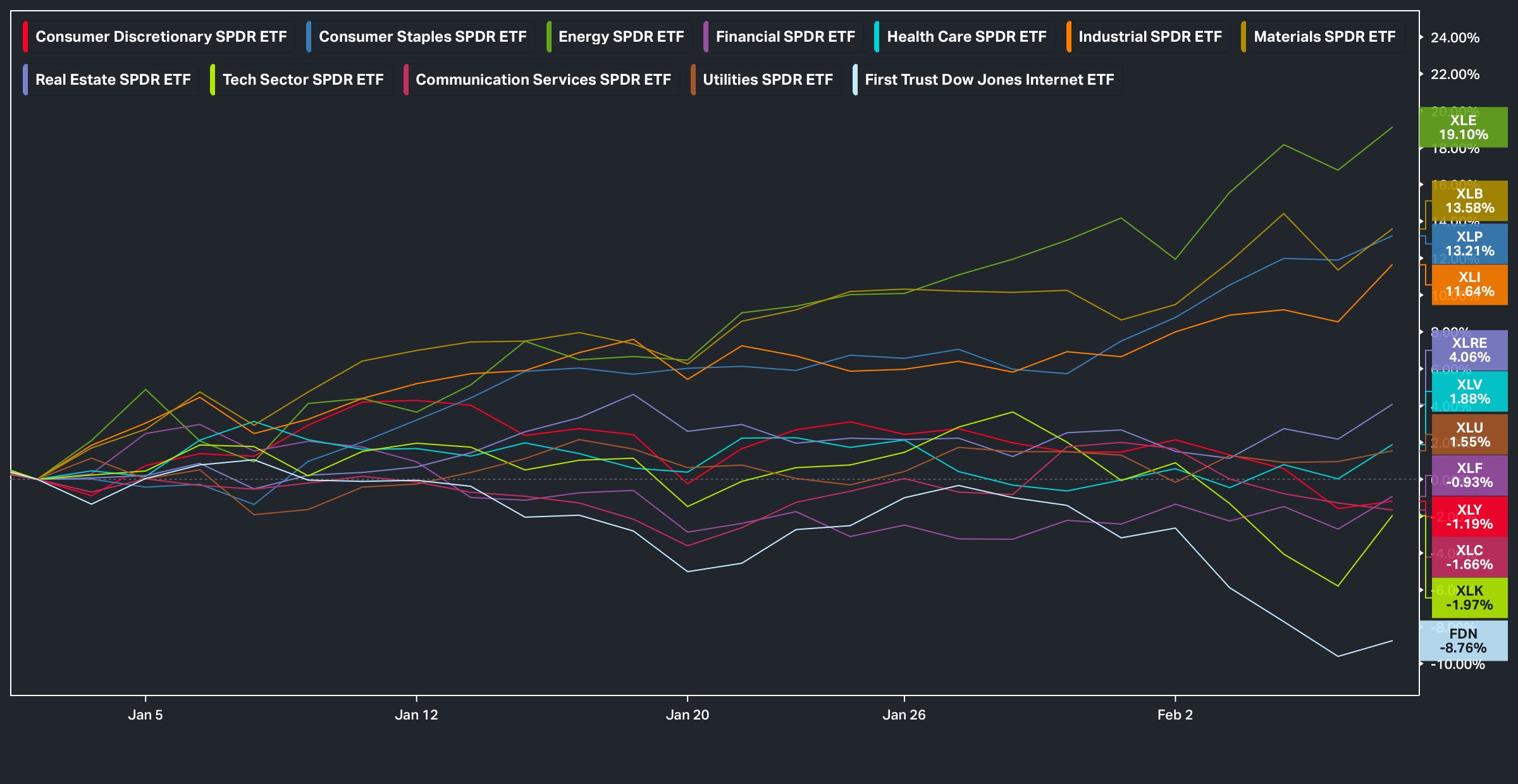 And in regard to the pricing-in of an economic re-acceleration, of the 5 best performing sectors YTD, 5 of them are Cyclical: