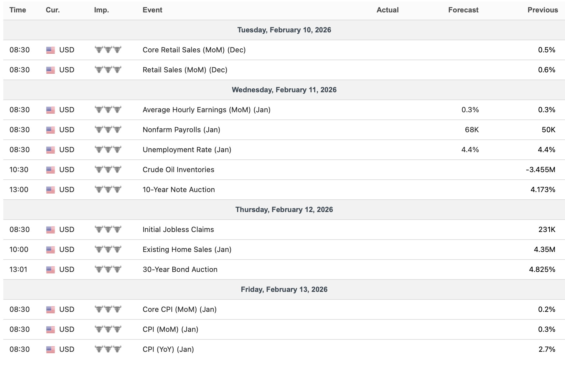 In regard to economic data into the upcoming week, this week is a bit of a busier one with the most important economic datapoint being on Wednesday (NFP #’s) whereas throughout the remainder of the week, we just have Retail Sales on Tuesday along with CPI #’s on Friday, but besides that, it should generally be a quieter week.
