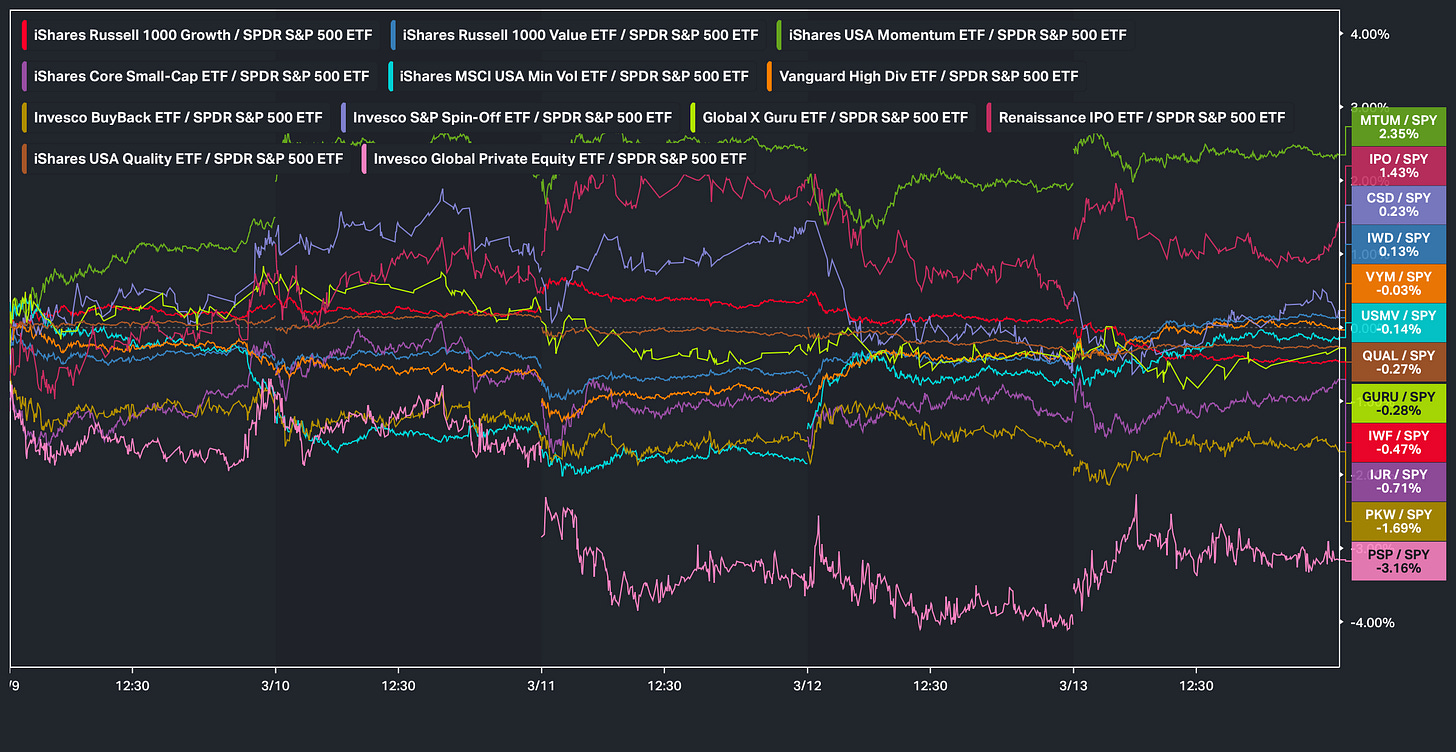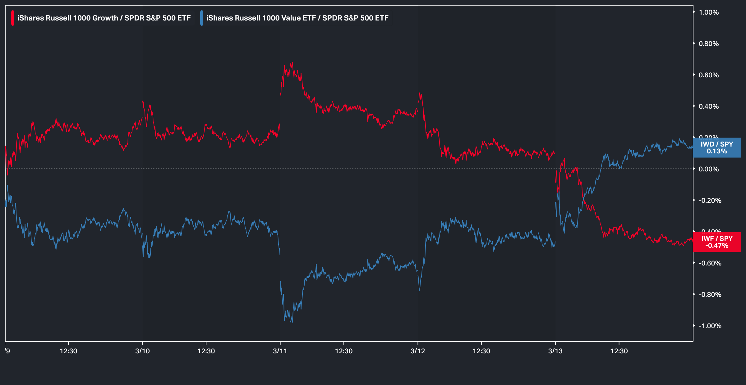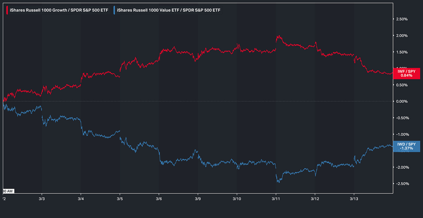 That said, earlier in the week, following the announcement of a coordinated global SPR release along with Trump stating that the ‘war was pretty much over,’ risk assets staged a sharp rebound, leading Growth to outperform Value, with the spread between the two reaching roughly 180bps at one point. However, into the latter half of the week, the de-grossing resumed as the rally in risk faded, leaving Value to close slightly higher on the week and ultimately outperform Growth by roughly 60bps.