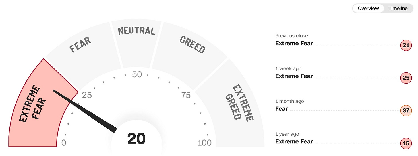 And continuing on that note, even with the S&P sitting just 5% below all-time highs, recent action has pushed markets into ‘extreme fear’ territory.