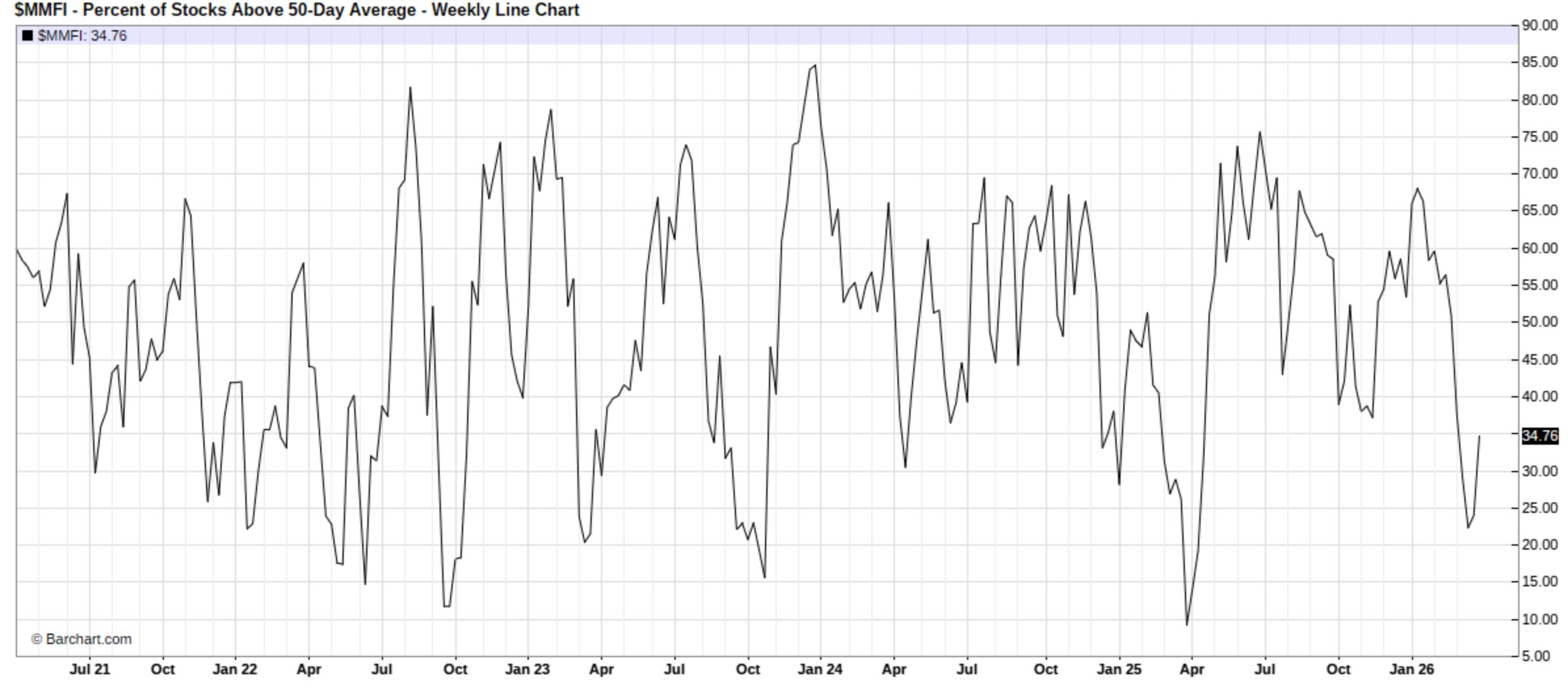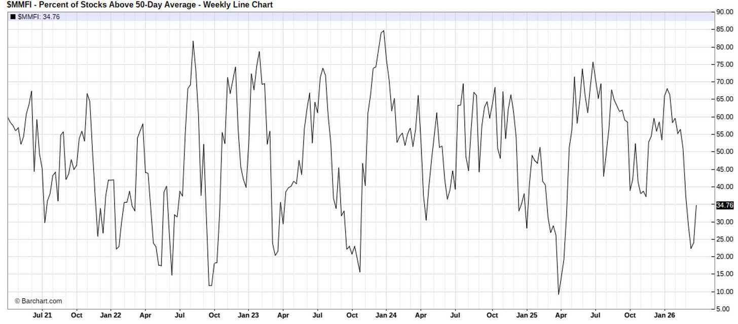 Although on a more broader timeframe, a different story can be told as despite the rebound, only 34% of stocks remain above the 50D, which still emphasizes a market that remains oversold on a broader timeframe, although in the shorter term, has worked off recent extreme oversold conditions: