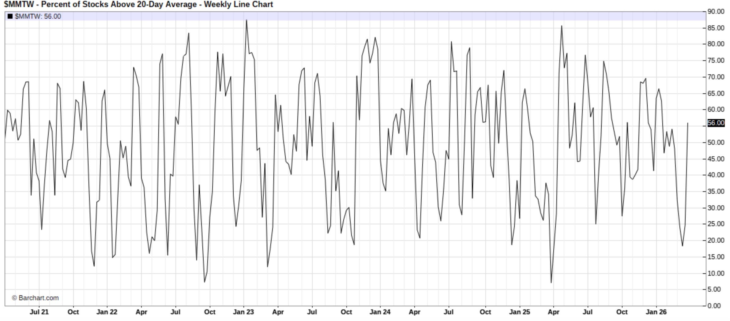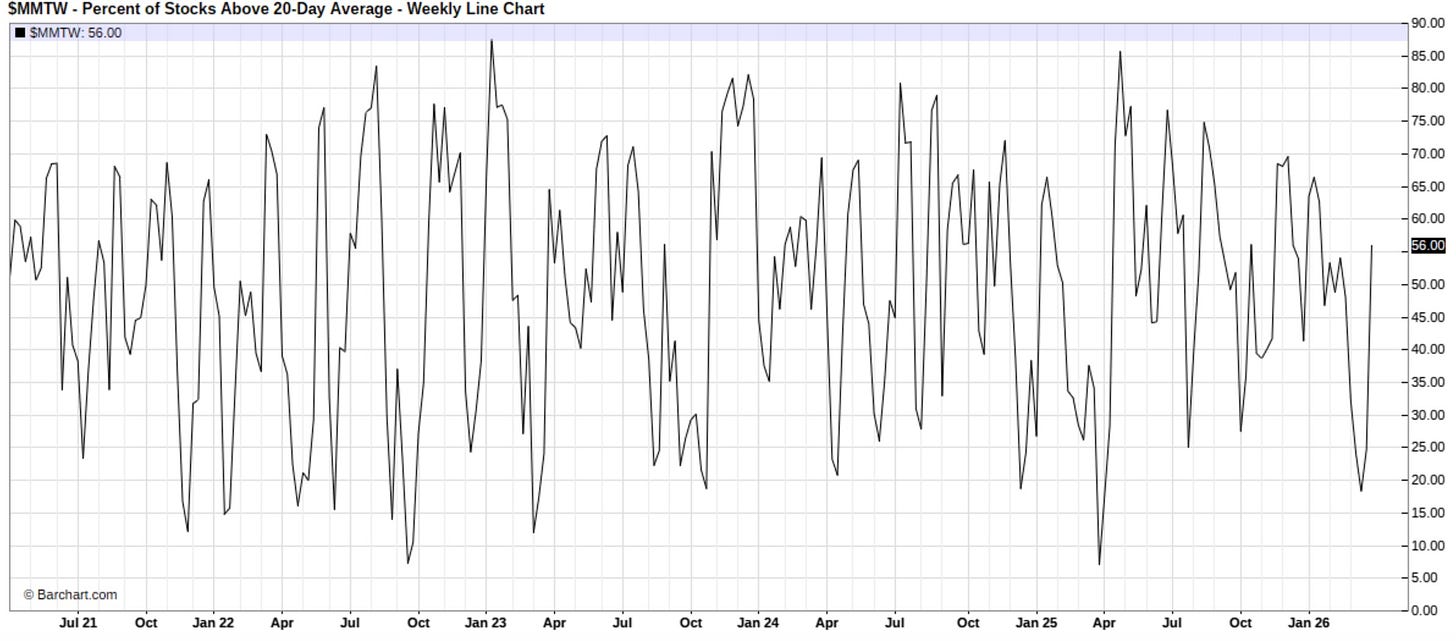 Moving along, following the risk-on action & snapback within the indices this past week, we saw quite the rebound within the % of stocks above the 20D, which currently sits at 56% & more so highlights a market that, in the shorter term, has worked off recent oversold conditions & is back toward a more neutral stance: