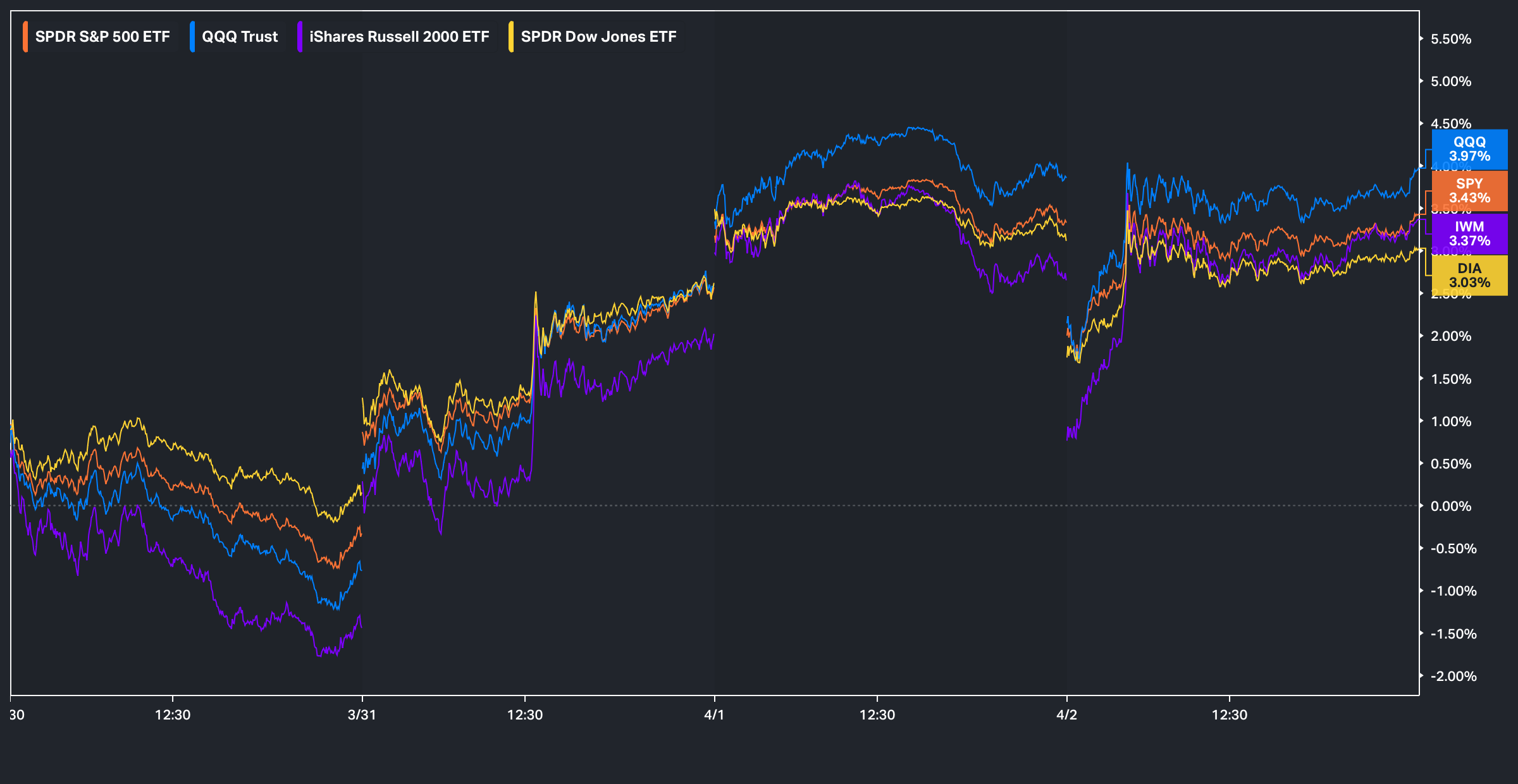 That being said, the Q’s ended up being the best performing of the indices, having closed higher by 397bps, whereas the Dow was among the ‘worst’ performing of the indices, yet still closed higher by just over 300bps on the week.