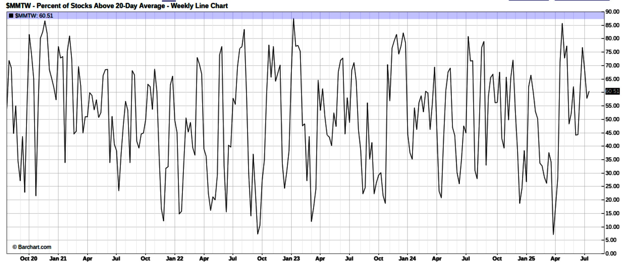 BUT, despite both Spooz & the Q’s achieving a new ATH with RSP being inches away from making a new ATH as well, the % of stocks above the 20D STILL only remains at 60% which once again reiterates that in the shorter-term, conditions aren’t necessarily overly extended on the upside & more so remain just above neutral.