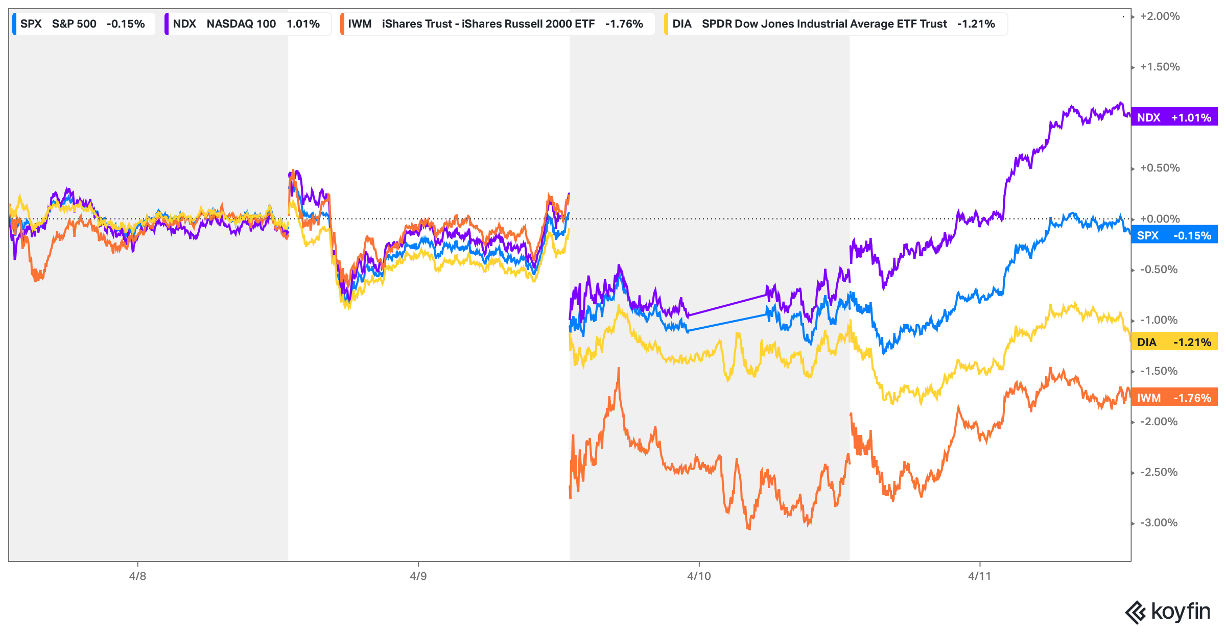 Some volatile action in the markets these past few days… Nasdaq is outperforming on the week as we have seen the rotation back to mega tech / momentum names whereas small-caps have been the relative laggard due to the pressure from the recent surge in yields.