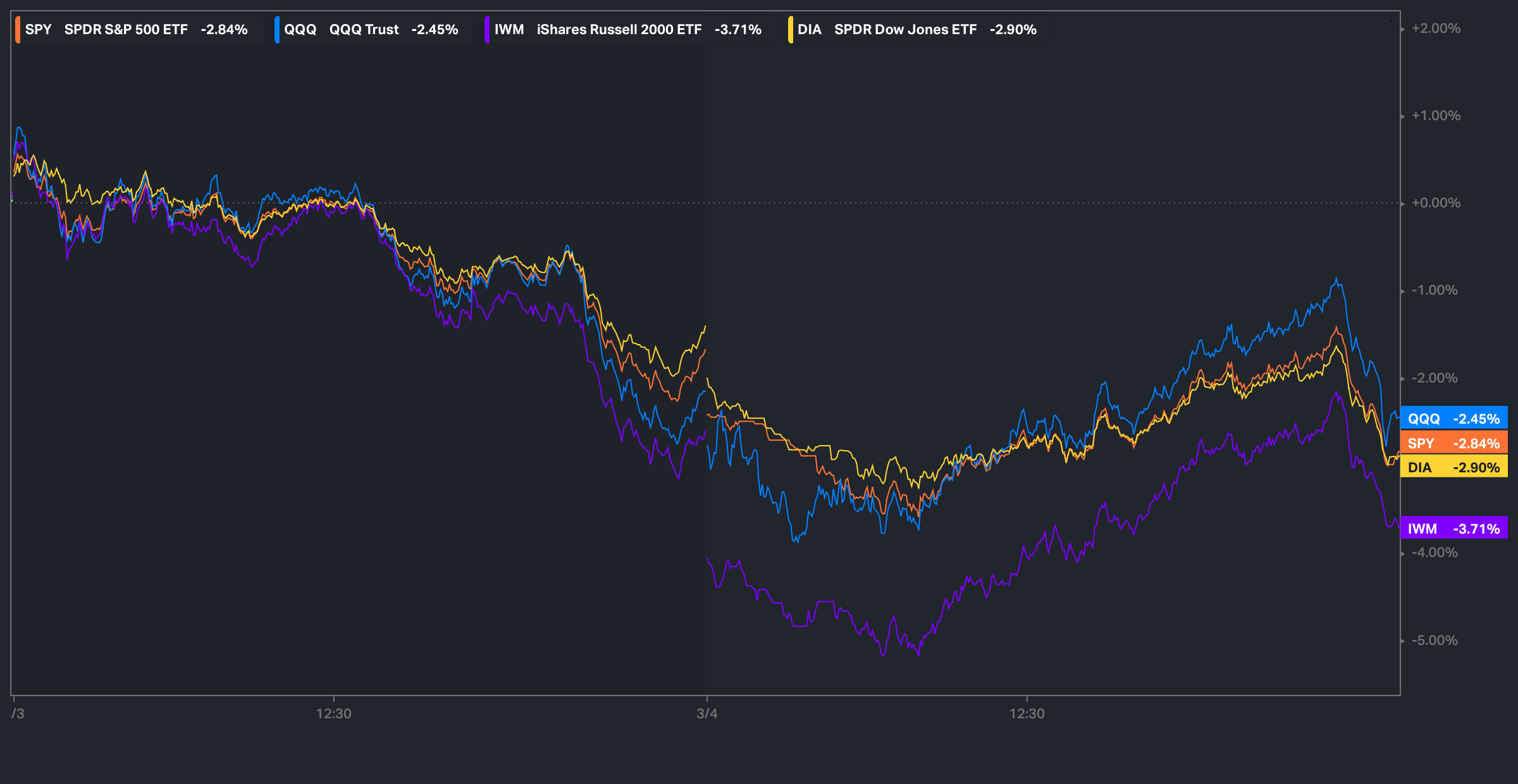 Quite the kickoff to the week in markets thus far as the headline driven volatility remains… yesterday, the markets initially kicked off the week in positive territory as we saw some slight upside followthrough from this prior Friday, but later on in the day, markets were once again met with a tariff headline which led to a late-day selloff & further continuation into today.