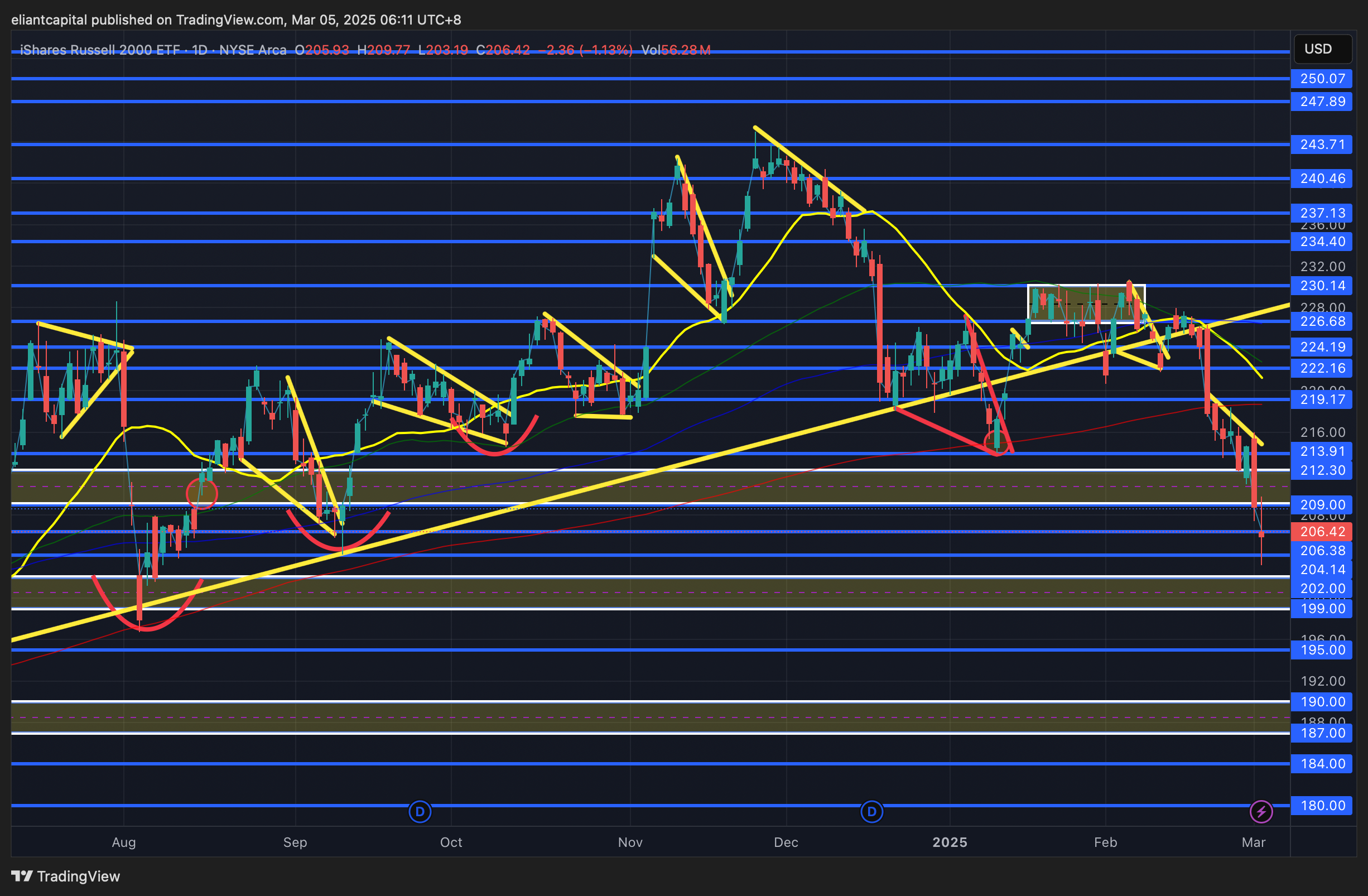 In respect to IWM… another week of further technical damage has been done thus far, but as mentioned just above, IWM is still backtesting this near 3+ year base breakout & the ultimate LIS (200wk) is sitting just below near 200ish. As of now, small-caps are up 100bps after-hours following the Lutnick headline & similar story as with all of the indices, but if the headline were to be confirmed by Trump, I do expect markets to solidify an island gap up tomorrow which could potentially solidify the interim bottom being in for now as recent uncertainties ease a bit, but for any sort of meaningful upside, we do still need to see IWM reclaim 213/ 214ish to start to work higher towards 219ish, as otherwise, interim rallies may continue to be faded until IWM forms a bit of a base to work off of & or establishes some support / a higher low gets made.