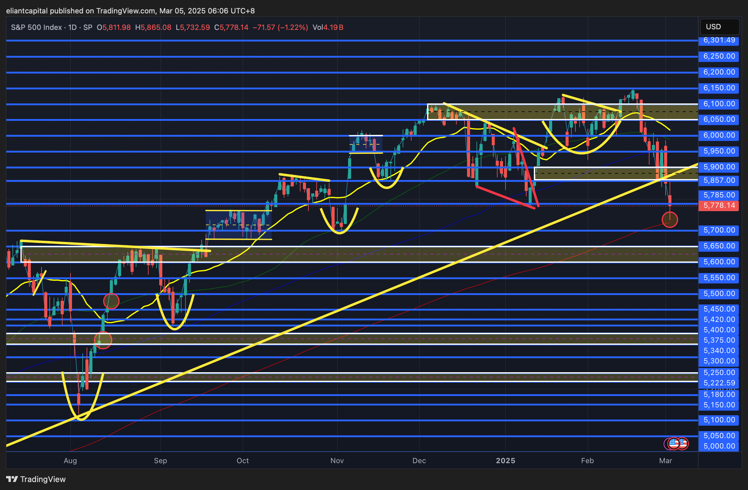 Another fairly volatile kickstart to markets this week… initially, Spooz / General indices were led with a slight gap up yesterday, but shortly following market open & a tad bit softer economic data (mostly driven by uncertainties surrounding tariffs), the indices resolved lower & couldn't manage a close above Fridays highs & the icing on the cake was Trump stating tariffs are “a go” which led Spooz to close yesterday out below last weeks lows which then ended up leading to a followthrough day to the downside in markets today.