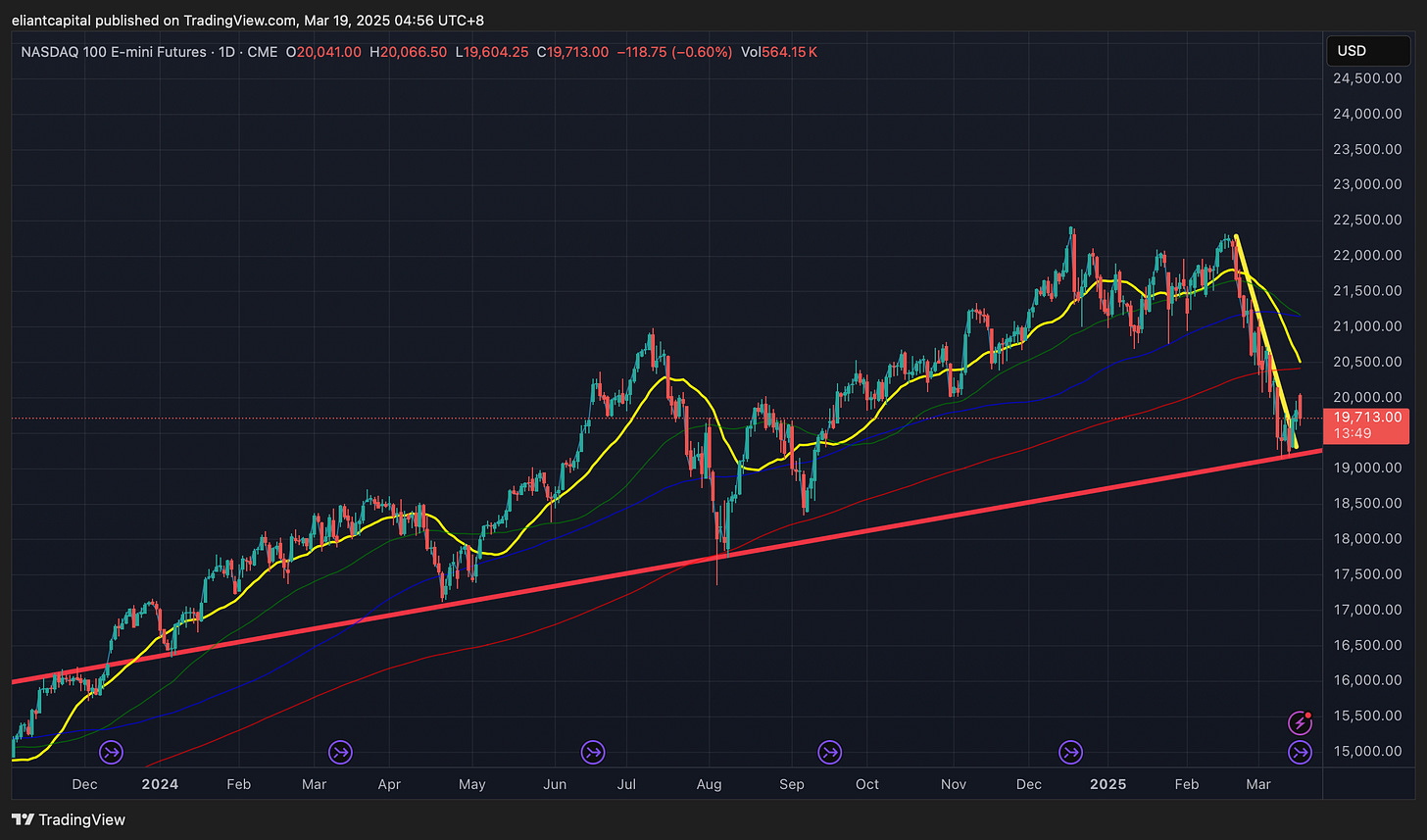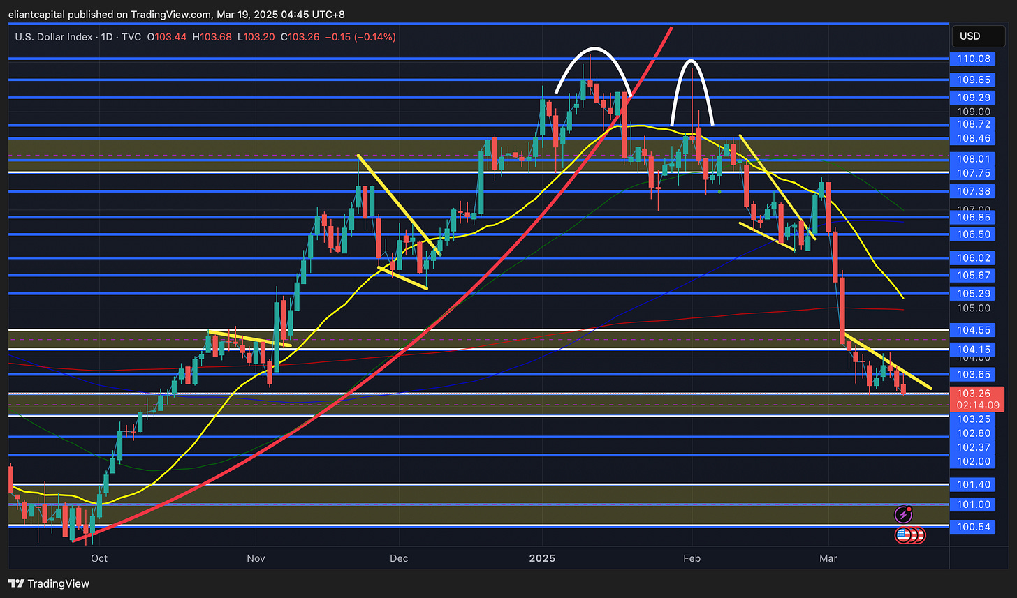 So… let’s recap a bit on what has changed since the January meeting… Well again, in January, there was worries of an overheating economy along with potential for a surge / rebound in inflation & since, the entire narrative has shifted to growth / recession worries & now there is hardly any talks of inflation. As we all know, but the Federal reserve / Powell has been very vocal on being supportive of the labor market & if data were to deteriorate, the Fed would have no issues with “pivoting” & or coming in as supportive for the labor market / economy. How has economic data been since January? Well, it probably depends who you ask as surveys have been awful but hard data excluding housing has generally been fine… not overheating data like January, but also not necessarily recessionary data either. This past FOMC in January, Powell tried his best to keep a middle-ground for the entirety of the speech & more so took the “wait & see approach.” Again, economic data has certainly slowed / come off the highs since which more so has been attributed to recent uncertainties regarding policy along with the recent market correction which attributes to the negative wealth effect, & in regard to inflation, as of now, disinflation looks set to resume… we’ve recently had softer than expected inflation reports (CPI / PPI / PCE). So, if Powell tried to keep a middle-ground in January with arguably “overheating” data & questions surrounding the inflation picture & NOW… we have slowing economic data along with the recent inflation picture having improved substantially since January (excluding surveys)… why wouldn’t Powell lean “slightly” dovish? I have seen the arguments that Powell may be hawkish due to policy surrounding tariffs which may be the case, but Powell himself has referenced tariffs as “short-term noise" & he more so is focused on the bigger picture which looks to be that disinflation is back to resuming.