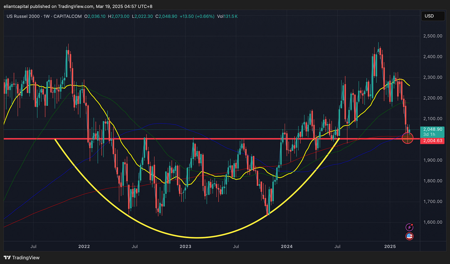 Small-caps continue to find support right off the 200wk whilst coinciding with the backtest of the 2+ year breakout in which led to the big rally in small-caps in ‘24: The ultimate S/R flip (prior resistance flipping to support).