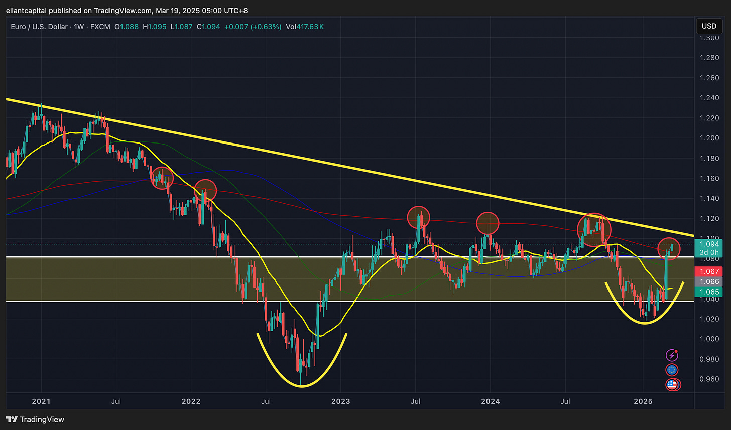 The big infrastructure & defense bill was finally approved today & as a result, we did see the Euro rally higher today as it now sits above the 200wk… this is a pretty pivotal spot for the Euro & as highlighted below but each time the Euro has overcome the 200wk, it has been very short-lived, so it would be a HUGE character change if we were to see this rally in EURUSD sustain above the 200wk.