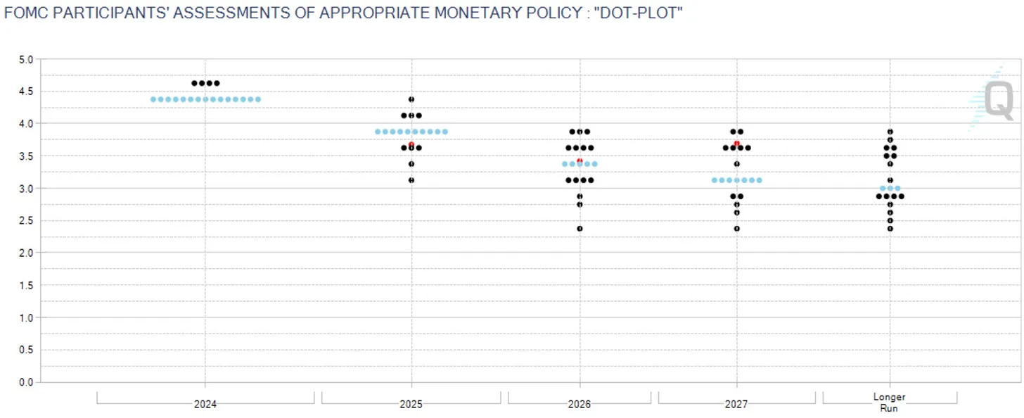 If anything given how the dot plot can be skewed amongst members, I *could see a slightly hawkish dot plot, but then Powell easing those fears a bit his speech, but in general, not expecting too big of surprises here… more so expect the Fed to generally maintain market expectations / no shocks to the market.